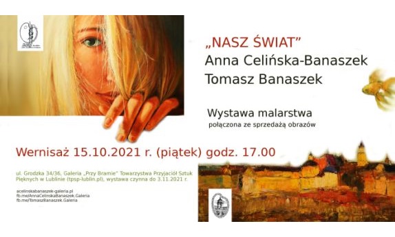 Wernisaż wystawy malarstwa Anny Celińskiej Banaszek i Tomasza Banaszka "Nasz świat" odbędzie się w Galerii TPSP "Przy Bramie" 15 października, zaś wystawę będzie można oglądać do 3 listopada.