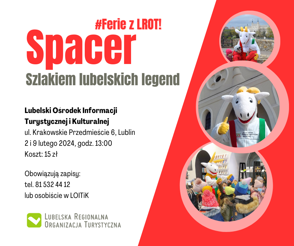 Lubelski koziołek zaprasza na ferie! Podczas spaceru po Starym Mieście dzieci poznają historię Lublina poprzez najciekawsze opowieści i podania. Towarzyszył im będzie miejski przewodnik oraz zawsze uśmiechnięty lubelski koziołek. ...