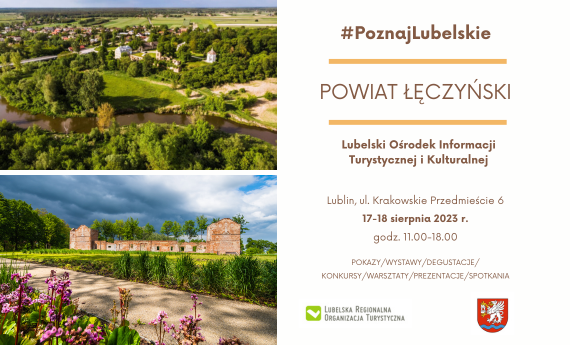 Lubelska Regionalna Organizacja Turystyczna i Starostwo Powiatowe w Łęcznej zapraszają na prezentację oferty Powiatu Łęczyńskiego w Lubelskim Ośrodku Informacji Turystycznej i Kulturalnej, ul. Krakowskie Przedmieście 6, w dniach 17-18 sierpnia 2023 r. w godzinach 11.00-18.00. ...