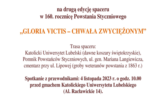 Czas na drugą edycję wyjątkowego spaceru organizowanego przez PTTK w Lublinie. W trakcie spaceru przewodnik przedstawi ciekowstki oraz fakty związane z Powstaniem Styczniowym. Więcej informacji na facebook.com ...