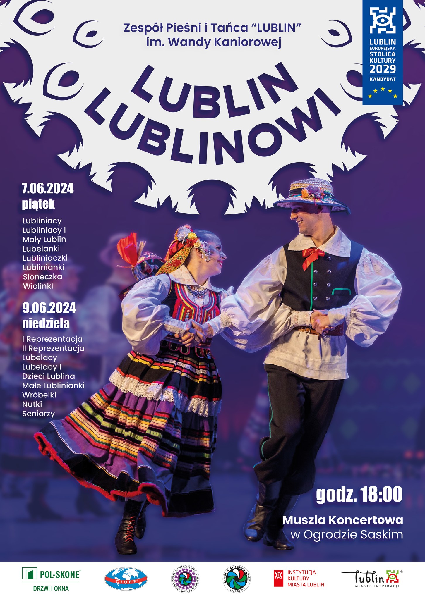 Podsumowanie roku artystycznego 2023/2024 Zespołu Pieśni i Tańca "Lublin" im. Wandy Kaniorowej odbędzie 7 i 9 czerwca 2024 r. na scenie Muszli Koncertowej im. Romualda Lipko w Ogrodzie Saskim.