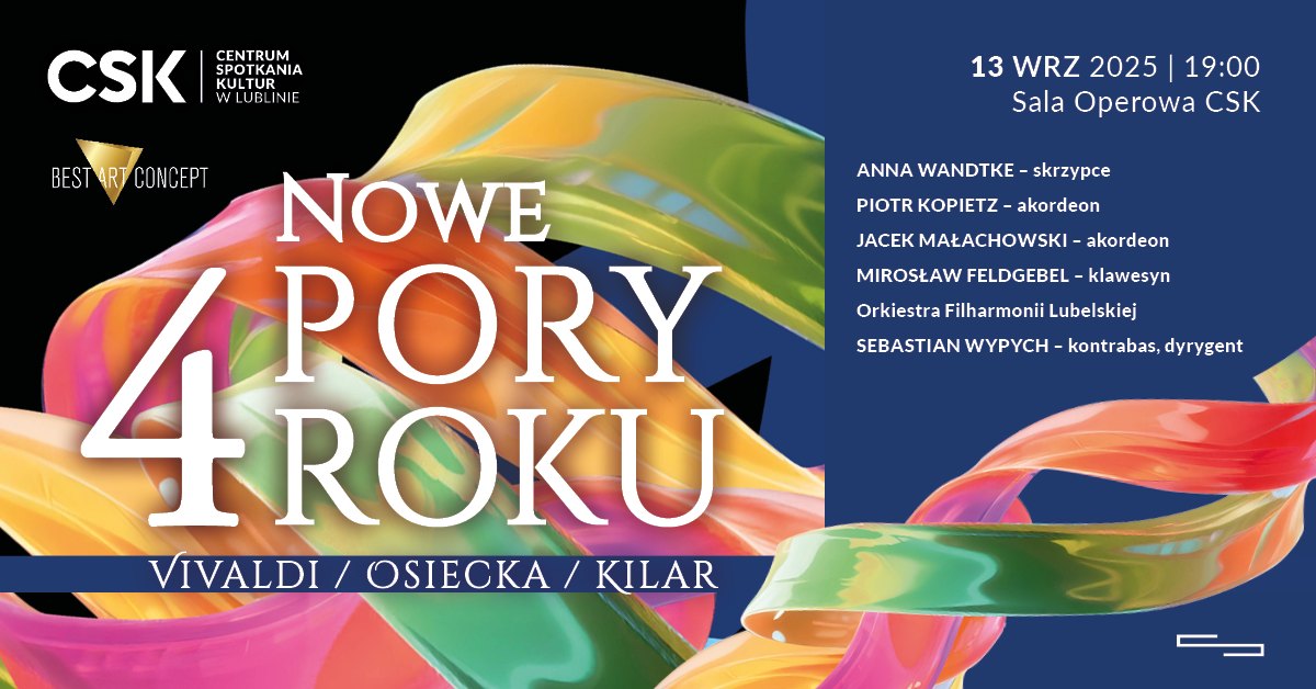 Nowatorska interpretacja „Czterech pór roku” Antonio Vivaldiego łączy elementy improwizacji w stylu minimal music, trans i world z cytatami z „Orawy” Wojciecha Kilara oraz recytacjami sonetów Vivaldiego i Agnieszki Osieckiej. Koncert w wykonaniu NEV VIBES i Orkiestry Filharmonii Lubelskiej w Centrum Spotkania Kultur zabierze publiczność w muzyczną podróż przez świat natury i żywiołów, wzbogaconą o artystyczne wizualizacje tworzone na żywo.