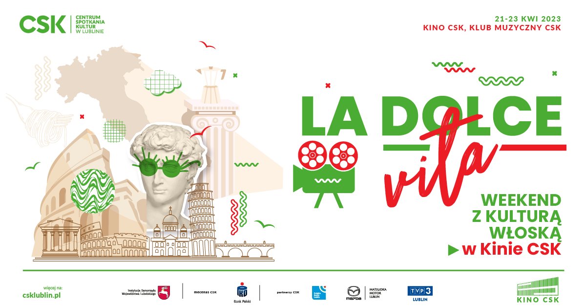 Czas na Włochy! Poczuj włoski klimat na własnej skórze w trakcie Weekendu z kulturą włoską w Centrum Spotkania Kultur. Na miłośników gorącej Italii czeka wiele ciekawych wydarzeń, takich jak: koncert Natalii Moskal, Tomasza Momota i Bartka Garczyńskiego, impreza w rytmie italodisco czy warsztaty kulinarne ze Stanisławem Żebrowskim. Natomiast w Kinie CSK czas upłynie pod znakiem włoskich filmów.