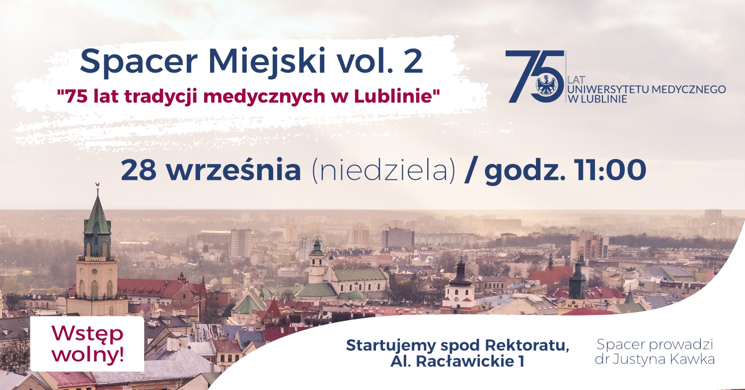 Z okazji 75-lecia Uniwersytetu Medycznego w Lublinie odbędzie się spacer miejski poświęcony historii pierwszych lekarzy, farmaceutów, stomatologów i pielęgniarek związanych z uczelnią. Wydarzenie przybliży sylwetki osób, których praca i pasja tworzyły fundament dzisiejszego Uniwersytetu. To wyjątkowa okazja, by odkryć miejsca i historie ważne dla rozwoju lubelskiej medycyny.
