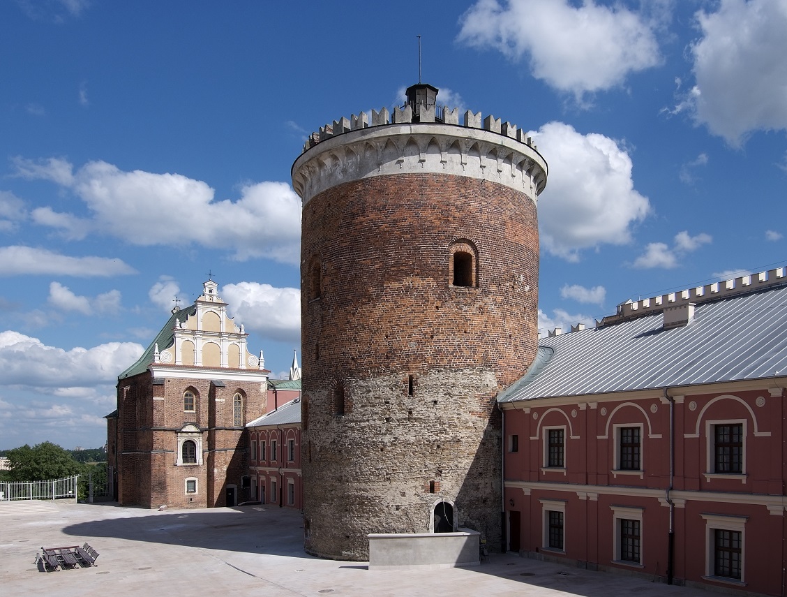 Wieża zamkowa, nazywana także donżonem, jest najstarszą budowlą na wzgórzu zamkowym i jednocześnie w całym Lublinie. Budowla została prawdopodobnie wzniesiona w drugiej połowie XIII wieku. Obiekt ma wysokość około 30 metrów a grubość jej murów w przyziemiu dochodzi do 4 metrów. Dolna część wieży zbudowana jest z kamienia wapiennego a górna z cegły ułożonej w wątku wendyjskim.