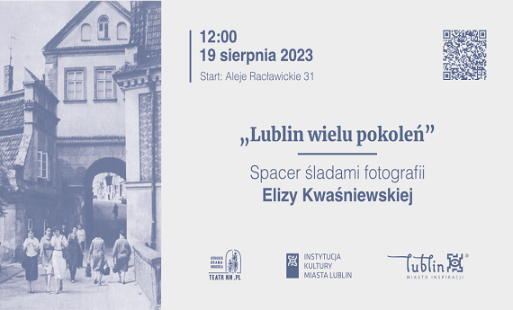 Poznaj Lublin oczami wielu pokoleń w trakcie spaceru z przewodnkiem, który odtworzy ślady słynnej lubelskiej fotografki Elizy Kwaśniewskiej. Więcej informacji na teatrnn.pl/kalendarium ...
