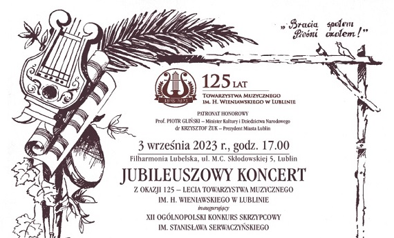 Czas na wielkie świętowanie! W niedzielę (3 września) odbędzie jubileuszowy koncert z okazji 125-lecie Towarzystwa Muzycznego im. H. Wieniawskiego w Lublinie. Więcej informacji na facebook.com ...