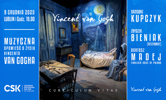 Spektakl muzyczny inspirowany życiem Vincenta van Gogha zabiera w pełną emocji podróż przez twórczość i wewnętrzny świat artysty. Muzyka, barwa i opowieść splatają się tu w wyjątkowe doświadczenie, tworząc poruszające spotkanie ze sztuką. Więcej informacji na facebook.com ...