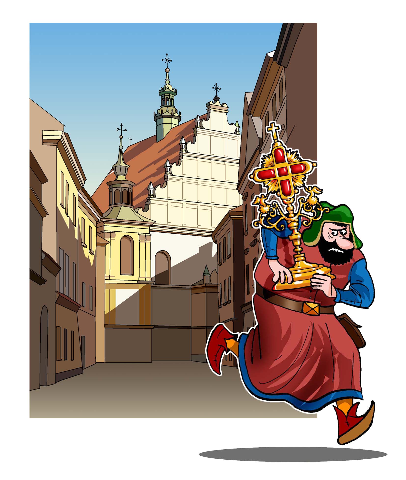 Jak trafiły do Lublina relikwie Drzewa Krzyża Świętego, tego dokładnie nie wiadomo. Różnie mówią. Podobno było to tak: dawno, dawno temu, jechał z Kijowa do Krakowa biskup Andrzej. Przejeżdżał przez Lublin i zatrzymał się u dominikanów żeby odpocząć. Konie też były zmęczone. Wyspali się i następnego dnia chcieli jechać dalej. A trzeba ci wiedzieć, że biskup Andrzej miał ze sobą coś bardzo cennego – relikwie Drzewa Krzyża Świętego, które dostał od księcia kijowskiego Iwana. Skąd książę miał kawałek drzewa, z którego zrobiony był krzyż, na którym umarł Jezus? Tego też nie wiadomo. Miał i dał biskupowi Andrzejowi, a ten rano zjadł w Lublinie śniadanie, napoił konia i ruszył w stronę Krakowa. A tu po chwili koń staje w miejscu i ani kroku do przodu zrobić nie chce. Biskup się zdenerwował – jak to tak, biskupa nie słuchać! A koń nic. Domyślił się biskup Andrzej o co tu chodzi: to był znak, żeby relikwii nie wywozić z Lublina! Wrócił więc do dominikanów i tu je zostawił.